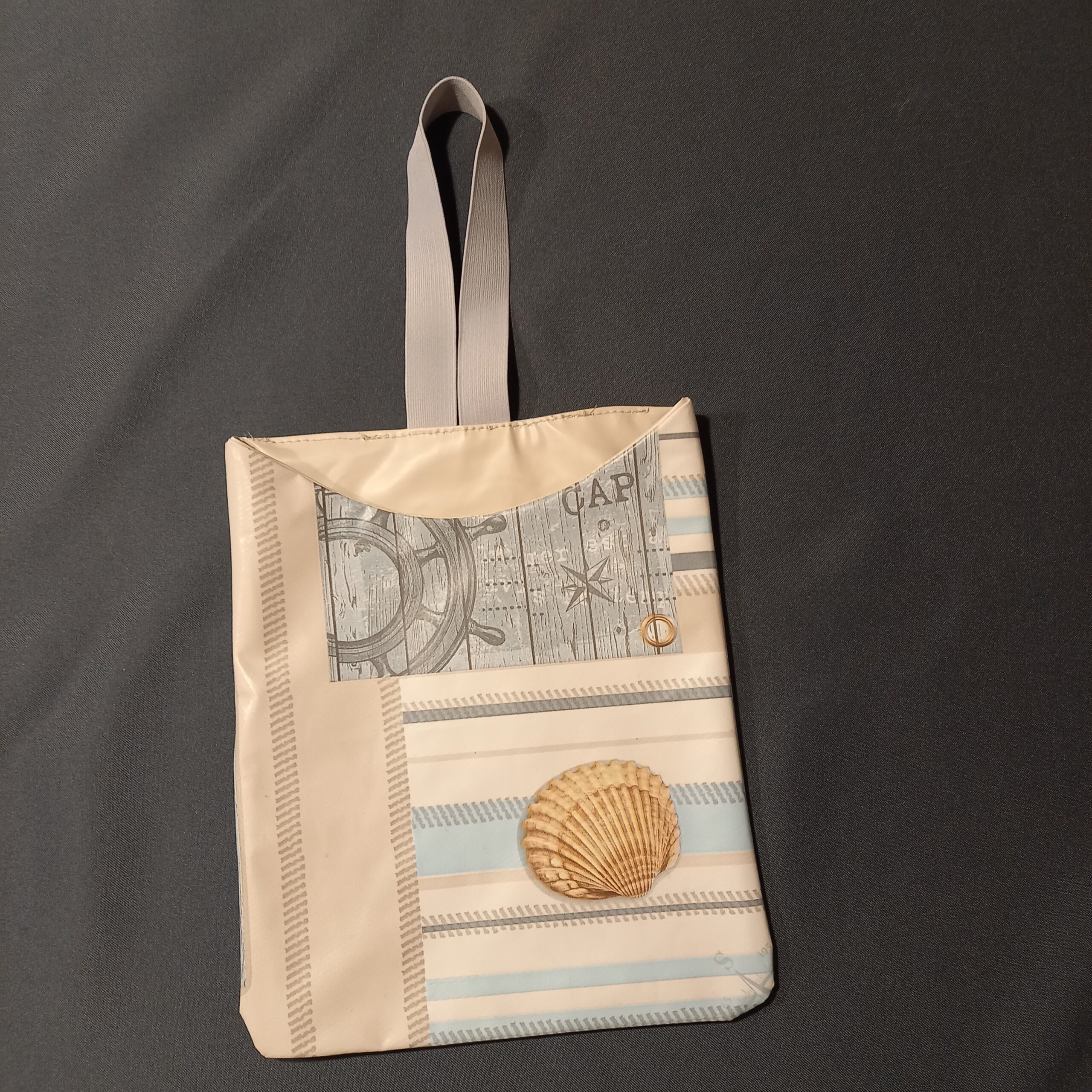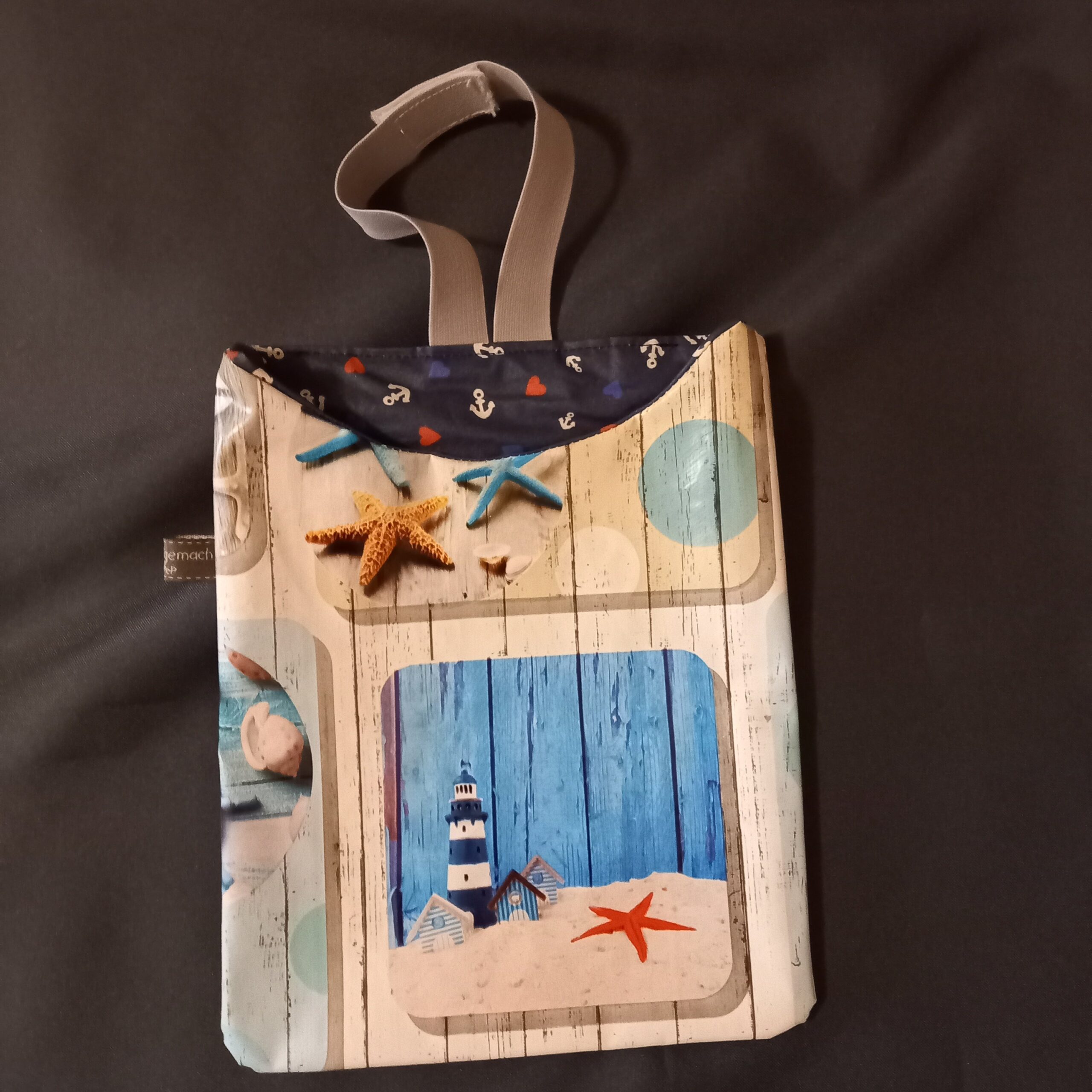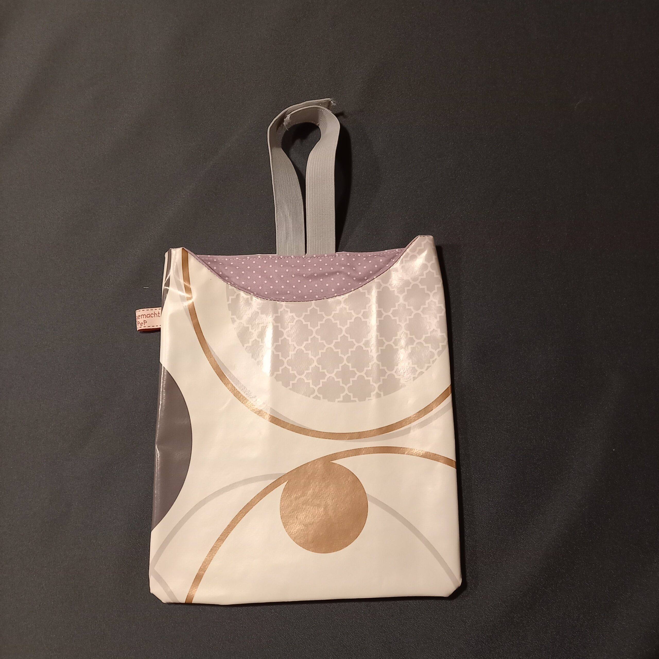 Müllbeutel für’s Auto aus Wachstuch oder beschichtete Baumwolle, teils ohne, teils mit Klettverschluss für’s individuelle Einhängen z. B. an den Haltegriffen auf dem Rücksitz oder an der Kopfstütze; praktisch für gebrauchte Tatü’s, Feuchttücher, Bananenschalen, Apfelbutzen, Riegelverpackung, Kaugummi, Chipstüte, Kassenbon von der Tanke und vieles mehr; einfach am Schaltknüppel zur Beifahrerseite einhängen; kann auch im Sommer als Mini-Kühltasche für ein Getränk umfunktioniert werden;  abwaschbar, Größe ca. 20 cm x 25 cm.