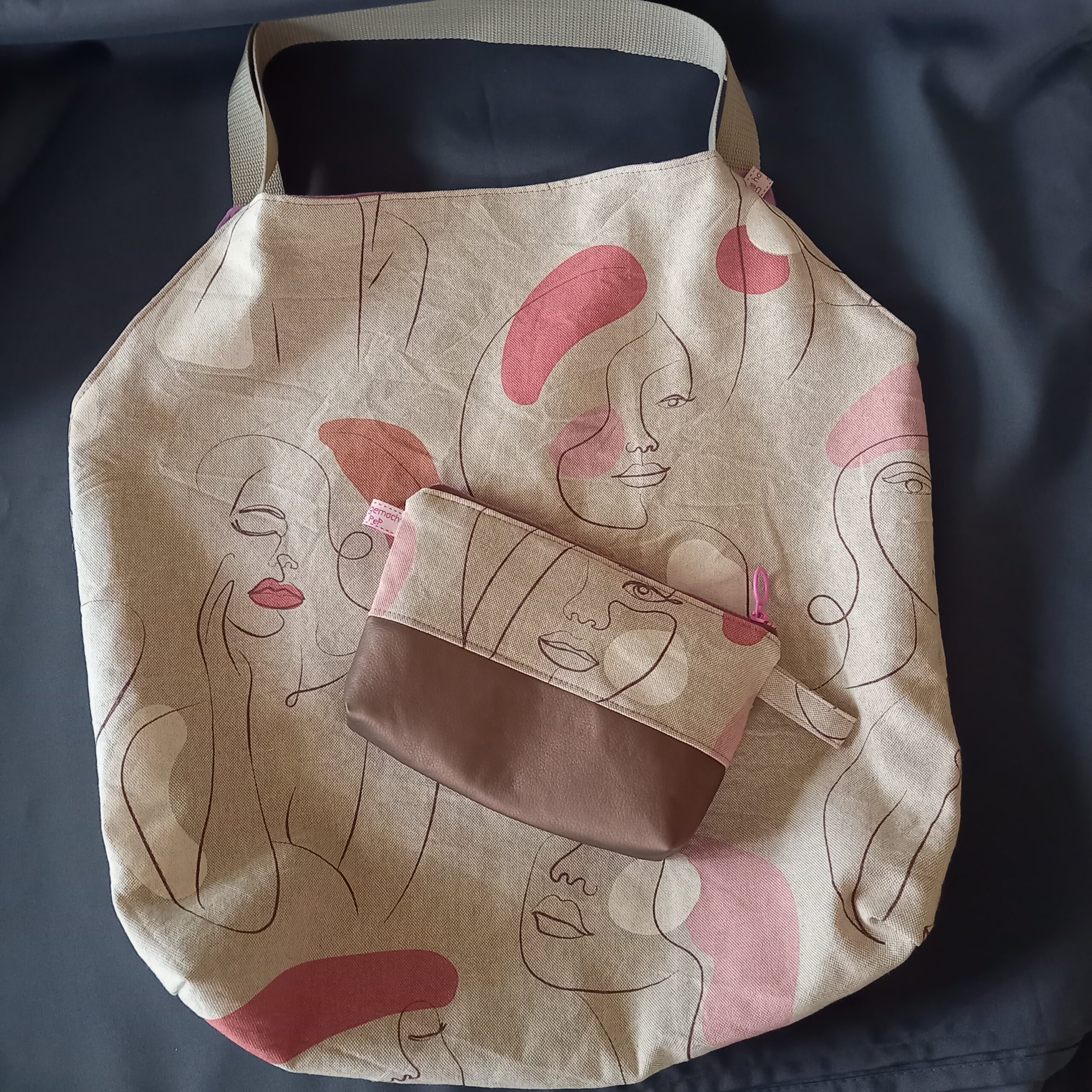 Kleines Täschchen mit Reißverschluss, als Schminktäschchen für in die Tasche, oberer Teil vom Außenstoff 100% Baumwolle, unterer Teil aus Kunstleder, Innenstoff abwaschbar mit Innenfächern, mit 30° waschbar, Maße ca. 21 cm x 14 cm, Bodentiefe 5 cm. Passend zur Stofftasche „Beauty face“.
